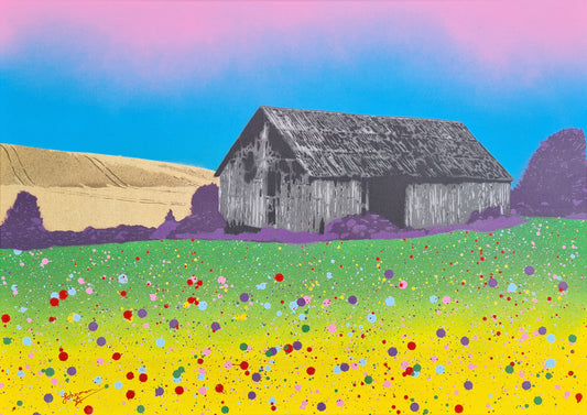 Using spray paint and stencils, intricately hand-cut and designed by himself, he is known for both his romantic designs on train tickets as well as vibrantly coloured works on canvas. His artworks reside in numerous collections worldwide andstreet art can be seen in various locations in Ireland and at Cheltenham Railway Station in the UK.